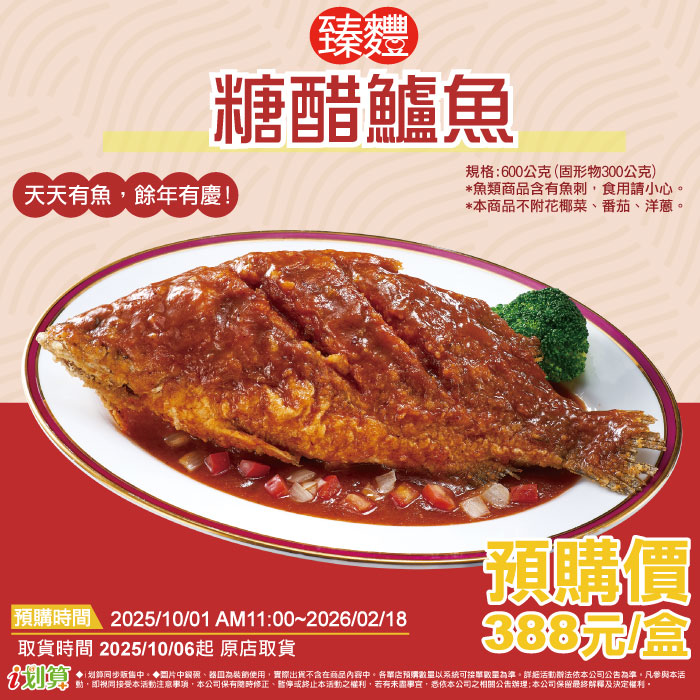 | 【包裝內容/規格】 | 規格:鱸魚x1包、糖醋醬x1包 重量:600公克/盒(固形物300公克) |
