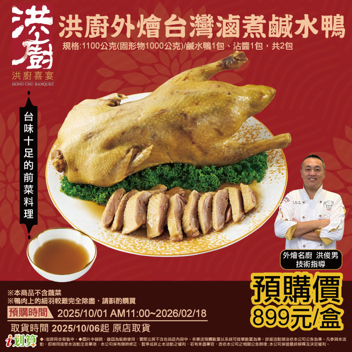 滷水鴨肉切盤是台式餐廳極受大家喜愛的切盤,洪師傅的滷水鴨用獨家配方醃製隔夜,再低溫蒸控,覆熱後不會柴,軟嫩好吃,要吃隨時蒸,操作很簡單,用剪刀剪也可以。