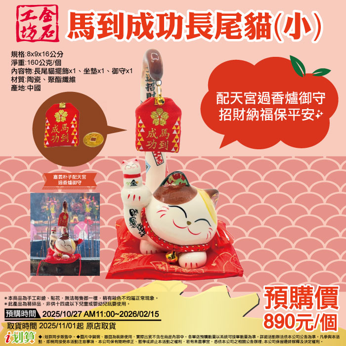 迷你長尾貓,右手聚財迎遠方!感謝朴子配天宮賜福加持御守,願您平安健康、事事如意、馬到成功!